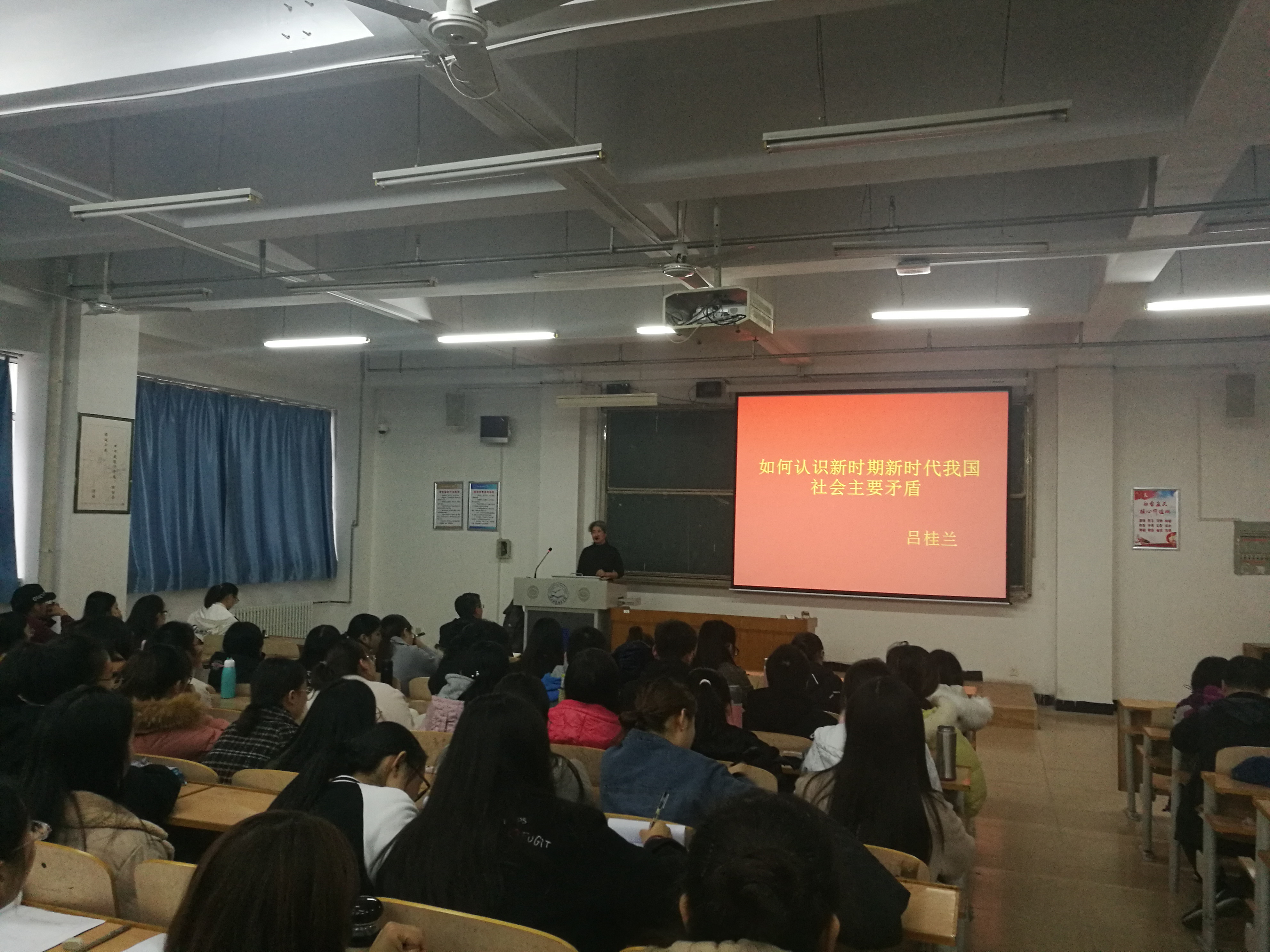 吕桂兰老师以如何认识新时期新时代我国社会主要矛盾为主题,从寻找道路、目标任务和历史使命等方面深入浅出的分析了新时期与新时代的区别;运用矛盾分析法深刻阐述了新时期新时代我国社会主要矛盾的具体体现;深刻解读了党的十九大报告提出的新时代我国社会主要矛盾已经转化为人民日益增长的美好生活需要和不平衡不充分的发展之间的矛盾,这一重大判断的现实意义;最后,吕桂兰老师勉励永利集团官网总站老员工要结合自身的学科优势,在互联网+、大数据、人工智能科技高速发展的时代背景下,抢抓机遇、迎接挑战,将创新精神融入未来朝阳产业中,改善行业发展不平衡不充分的现状,为实现人民对美好生活的向往而努力奋斗,把报效祖国、造福人民、建功立业作为自己人生的崇高理想。