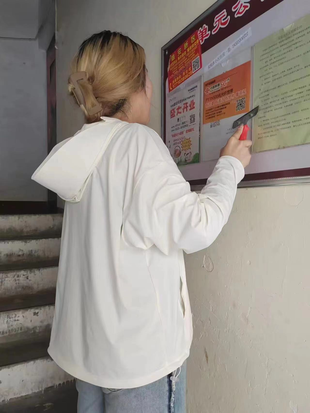 2023年9月22日,永利集团官网总站计算机科学与技术2206团支部于在水一方社区开展了一次清除老旧小区广告的活动。