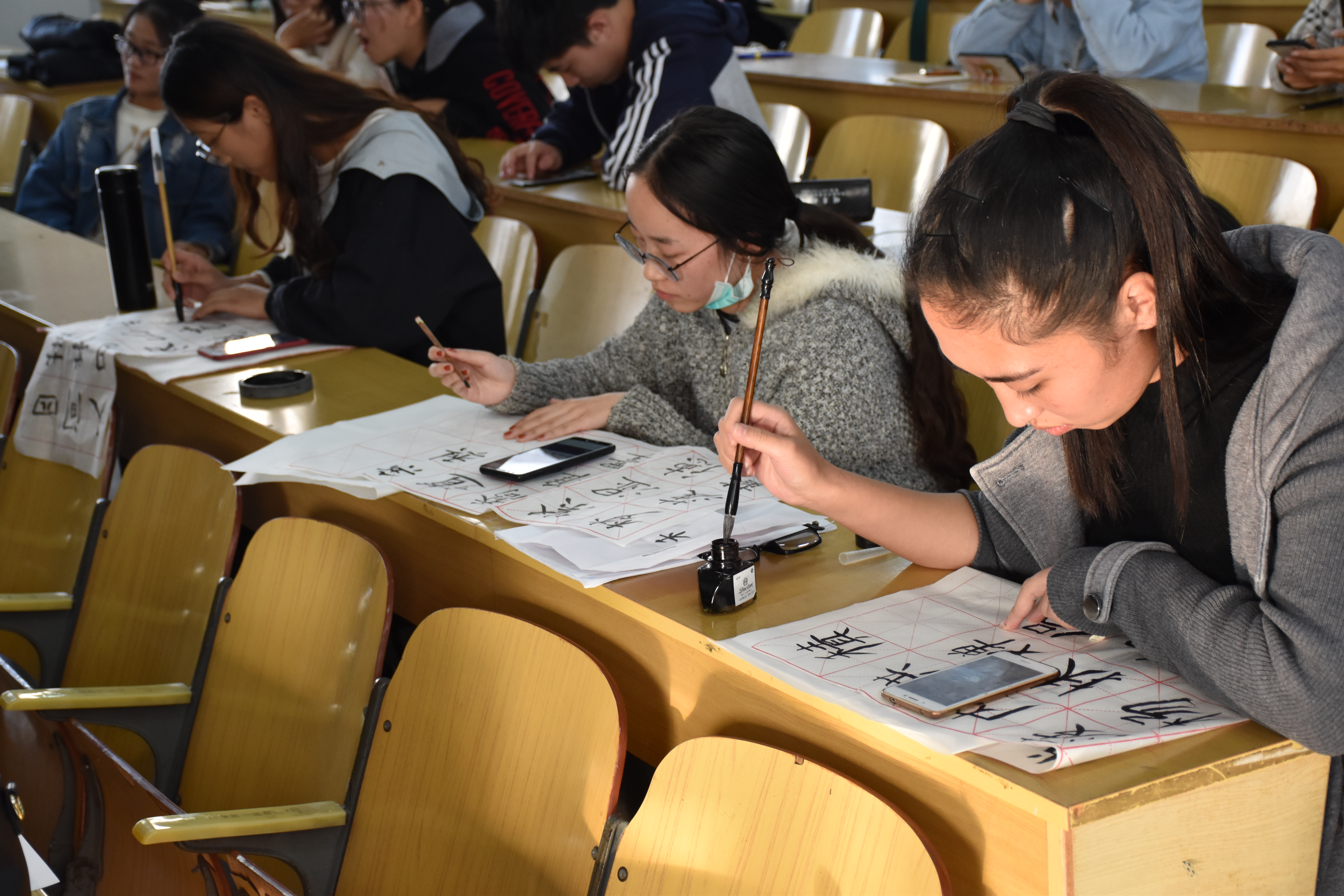 本次比赛分为硬笔书法、粉笔字和毛笔字三个比赛环节,书写内容包括诗词、国学、散文、名言警句等。同学们在此次比赛中握笔正确,坐姿端正,表现出良好的书写习惯,所写作品笔画流畅,横平竖直,结构匀称,整体美观。每位同学都认真地书写并在规定的时间内完成书写作品。