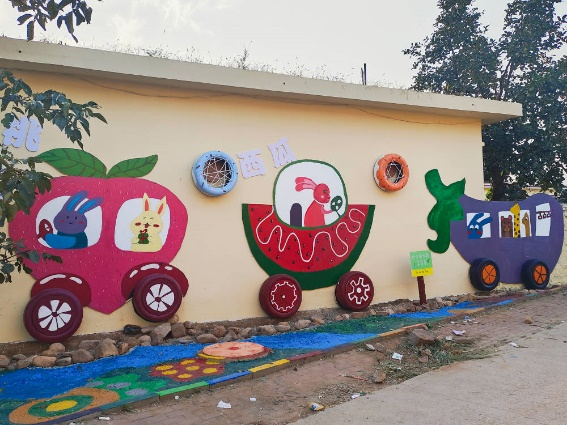 获奖作品《轮胎童话》有效利用废旧轮胎,将创意、环保、美育相结合,以吴家房村的蔬果为题、童趣为笔书写乡村艺术;作品《四季予你》通过自然美景与环保材料的巧妙结合,展现秋冬季节变化及废旧物品再利用的创意,传递人与自然和谐共生的理念。