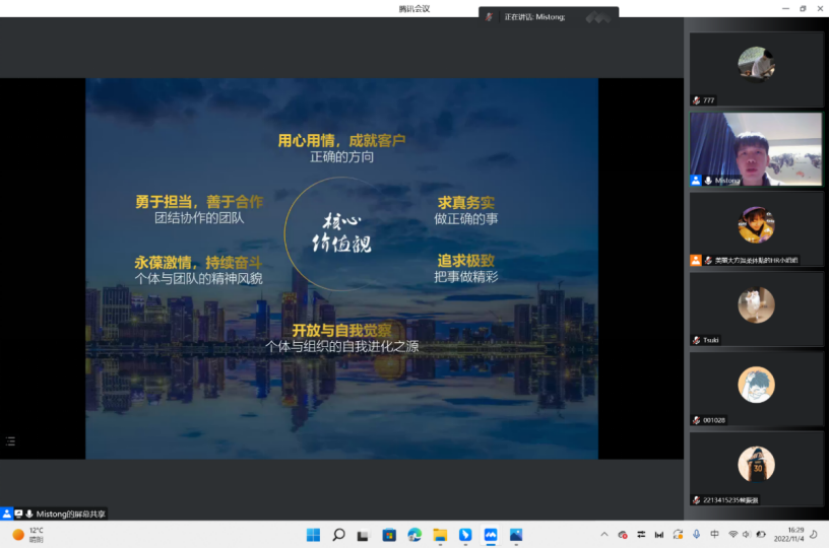 2022年11月4日星期五下午4点铭师堂空中宣讲会顺利在线上召开。永利集团官网总站有求职意愿的同学积极参加了本次会议。