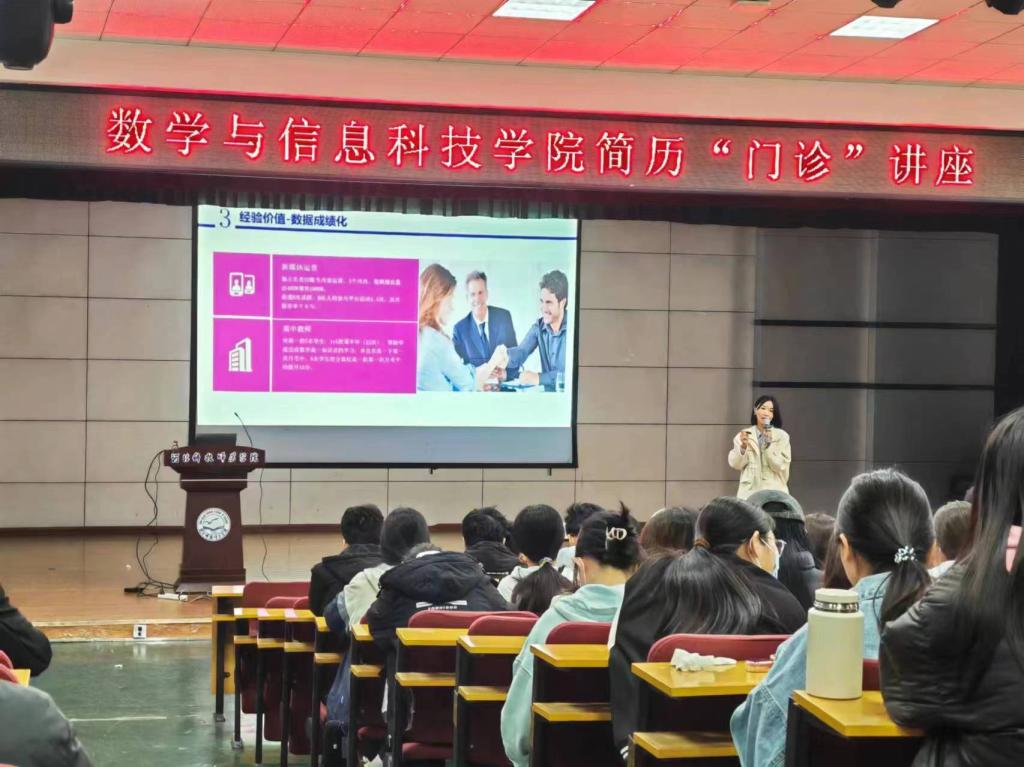 4月11日,永利集团官网总站“职引未来,简历先行”简历门诊活动在多功能厅成功举办。企业资深人力资源经理、职业规划师王娜老师应邀主讲,公司全体辅导员,2024届、2025届本科毕业生参加活动。