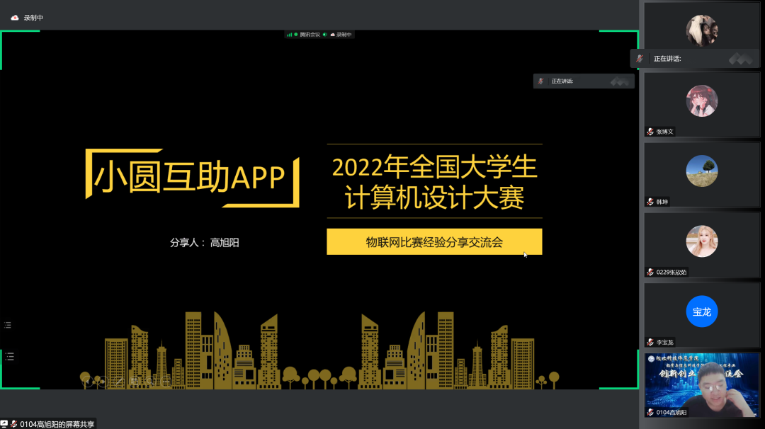 本次会议邀请了韩坤老师作为主讲人,7名获得省级比赛奖励的优秀团队代表为物联网工程专业全体同学分享参赛经验。